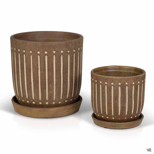 Availability varies by location. Check with your local store for current availability. Ceramic indoor pottery with etched vertical lines and two-t...